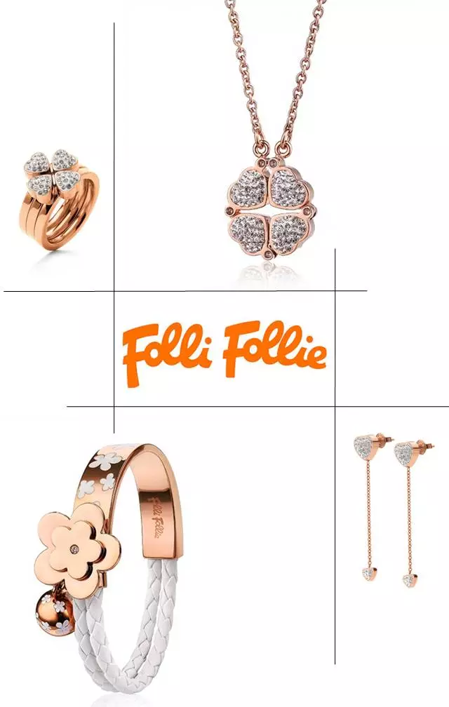 Folli Follie在最初建立品牌时,把自己定位成一个真正的市场先锋,在其首批系列中,创造出由银和Murano玻璃制造的独特首饰,在此后的全部首饰系列中,品牌也引入了由银色或金色不锈钢搭配钻石的制作风格,成为随后大家追随的首饰潮流。Folli Follie凭借首饰的材质(纯银、不锈钢、青铜、贵重宝石和半宝石)和满足各种需求的价格范围,向消费者提供独具匠心的各种款式风格的首饰。